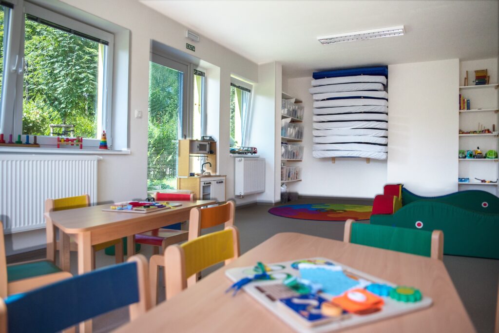 Díky skvělé lokaci mají děti dostatek prostoru pro venkovní aktivity, hru a relaxaci. V naší zahradě najdou děti pískoviště, klouzačku, odrážedla a mnoho dalších zábavných prvků, které podporují jejich fyzický a sociální rozvoj. Dům je vybaven oddělenou jídelnou, dvěma hernami a ložnicí, což zajišťuje pohodlí a bezpečnost pro každou aktivitu.